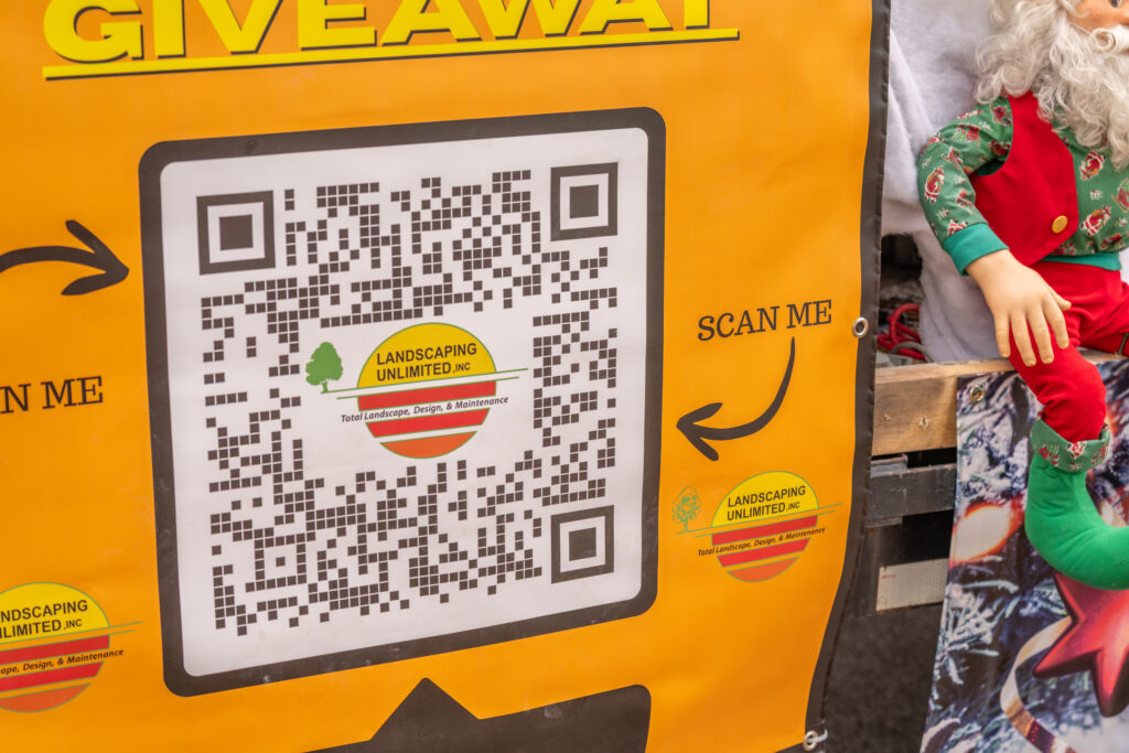 During the parade, our banner carried a QR code that led to the official Landscaping Unlimited Giveaway page, and 36 people scanned it on the spot, but parades move fast...