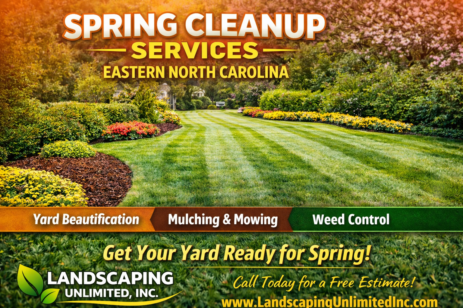 Get your yard ready for warm weather with spring cleanup, mulching, mowing, and weed control in Eastern North Carolina. Contact Landscaping Unlimited, Inc. today.