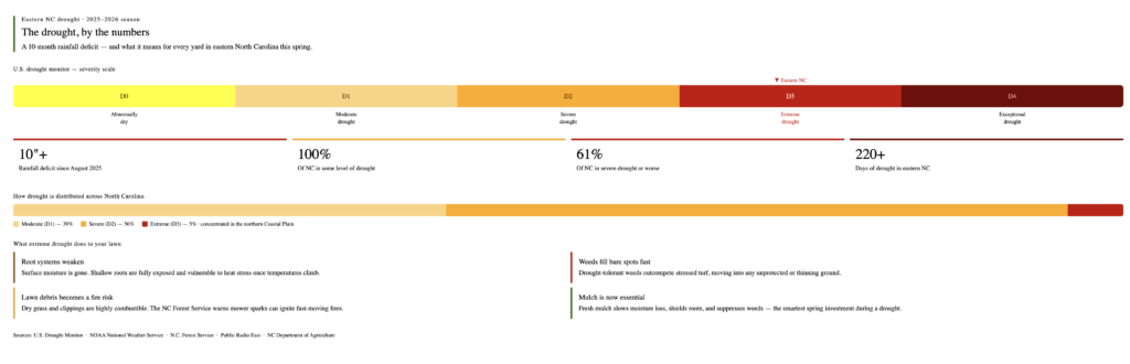 One thought on “Your Yard Is Under Stress Right Now: Here’s What Eastern NC’s Historic Drought Means for Your Lawn This Spring.”